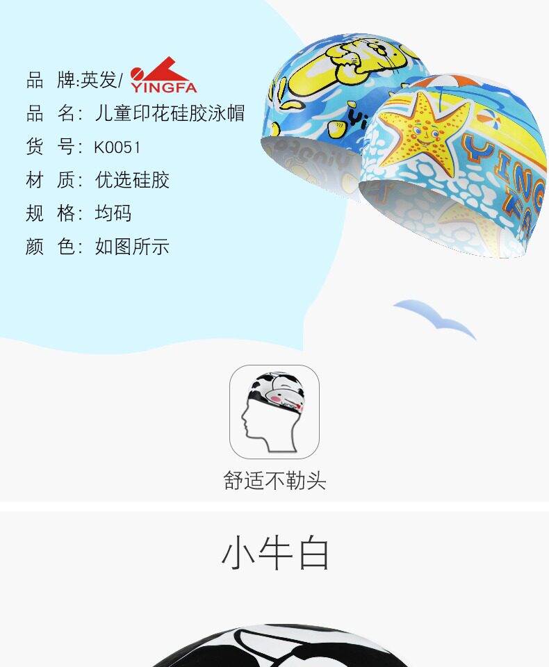 英发 Детская модная милая плавательная шапочка, водонепроницаемая большая мультяшная шапка для плавания