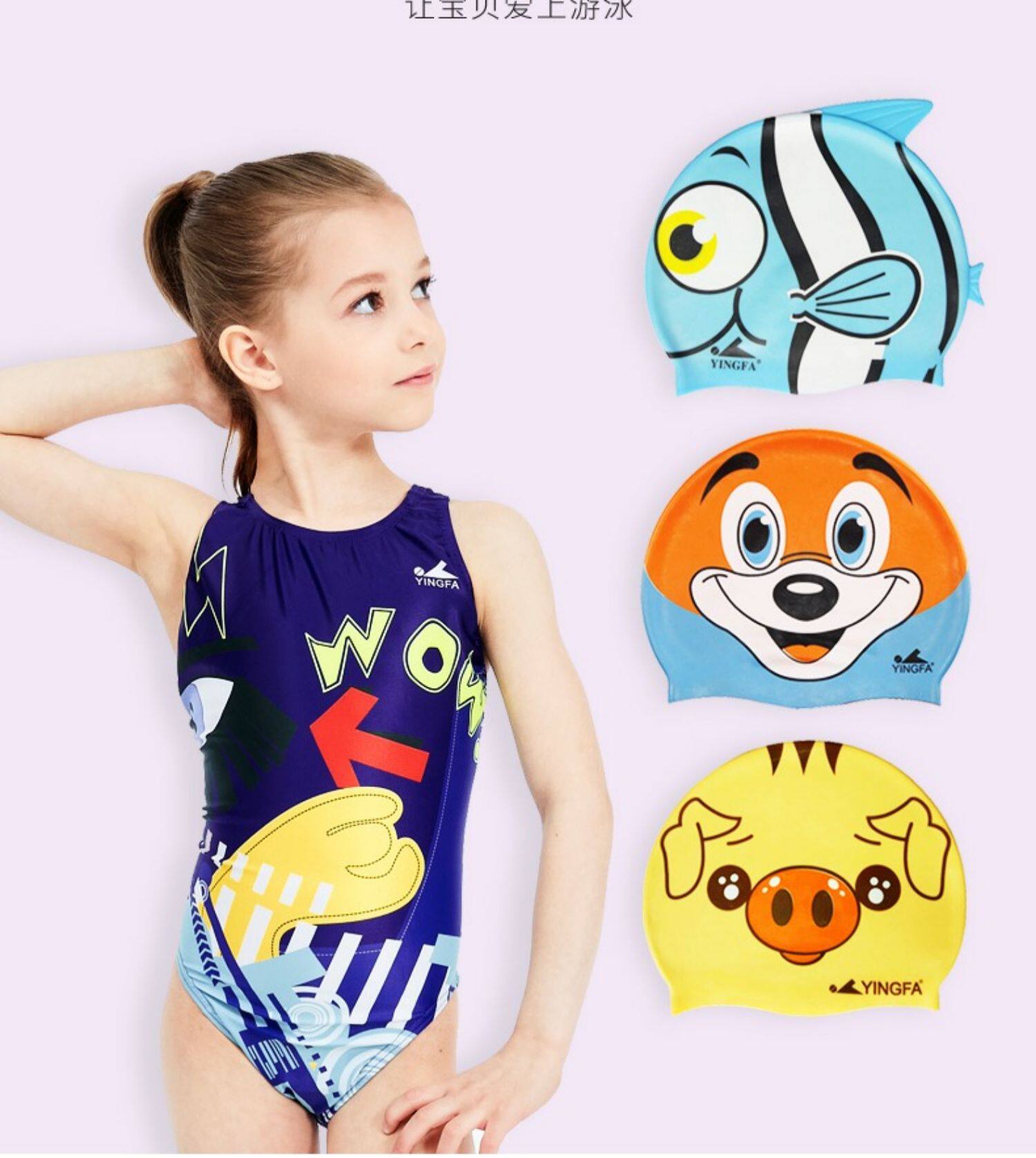 英发 Плавательная шапочка, водонепроницаемая мультяшная модная милая детская шапка для плавания