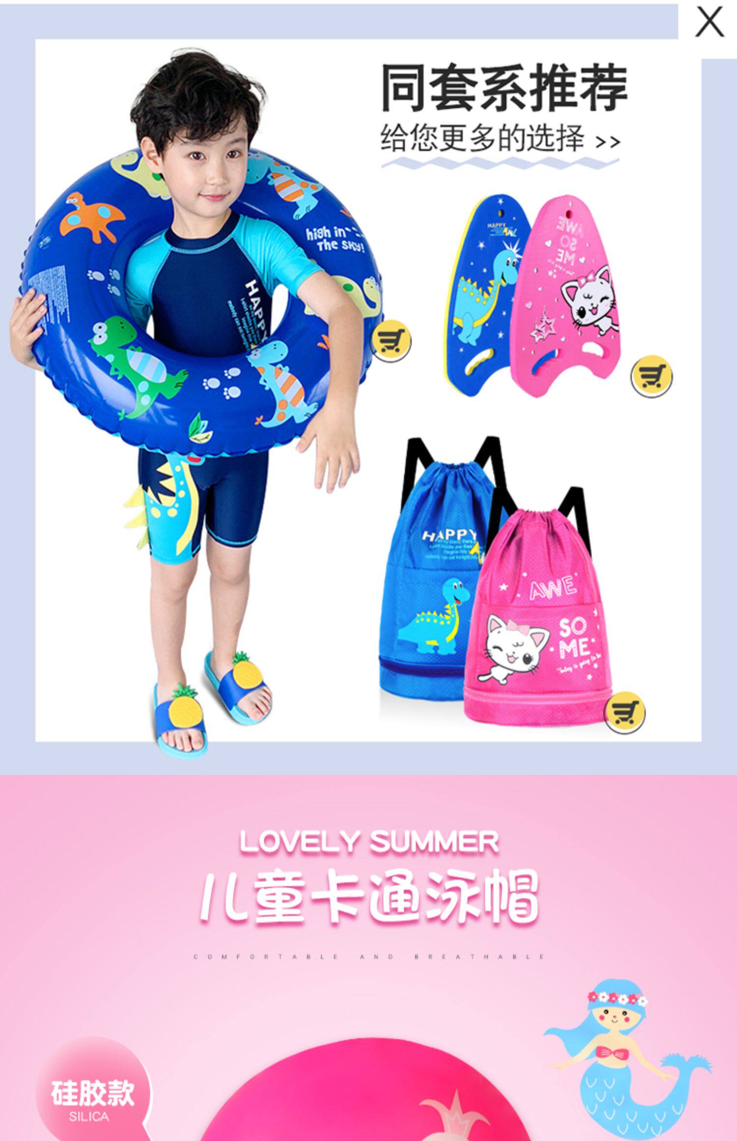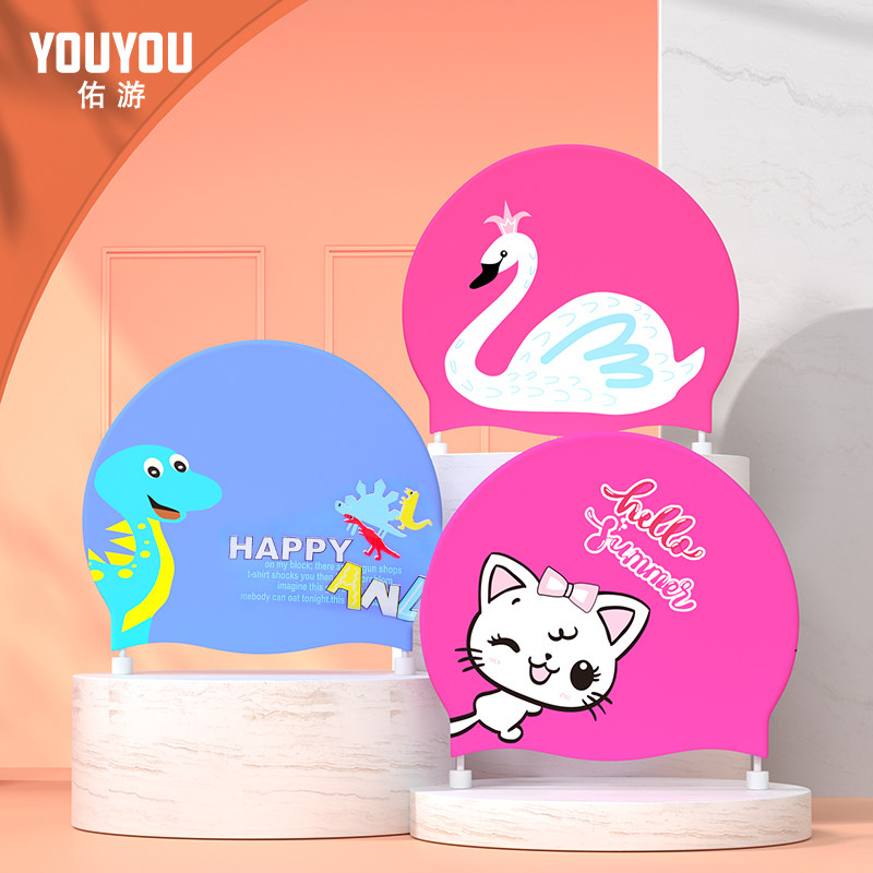 Детская силиконовая плавательная шапочка для плавания для мальчиков, водонепроницаемая шапка, водонепроницаемый милый комплект