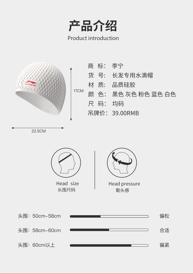 Li Ning, плавательная шапочка, водонепроницаемый силиконовый комфортный клей в форме капли для плавания, уход за волосами