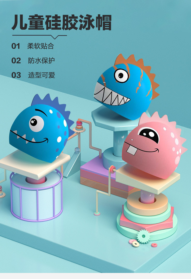 Детская силиконовая плавательная шапочка подходит для мужчин и женщин, водонепроницаемая шапка, мультяшный динозавр для плавания, новая коллекция