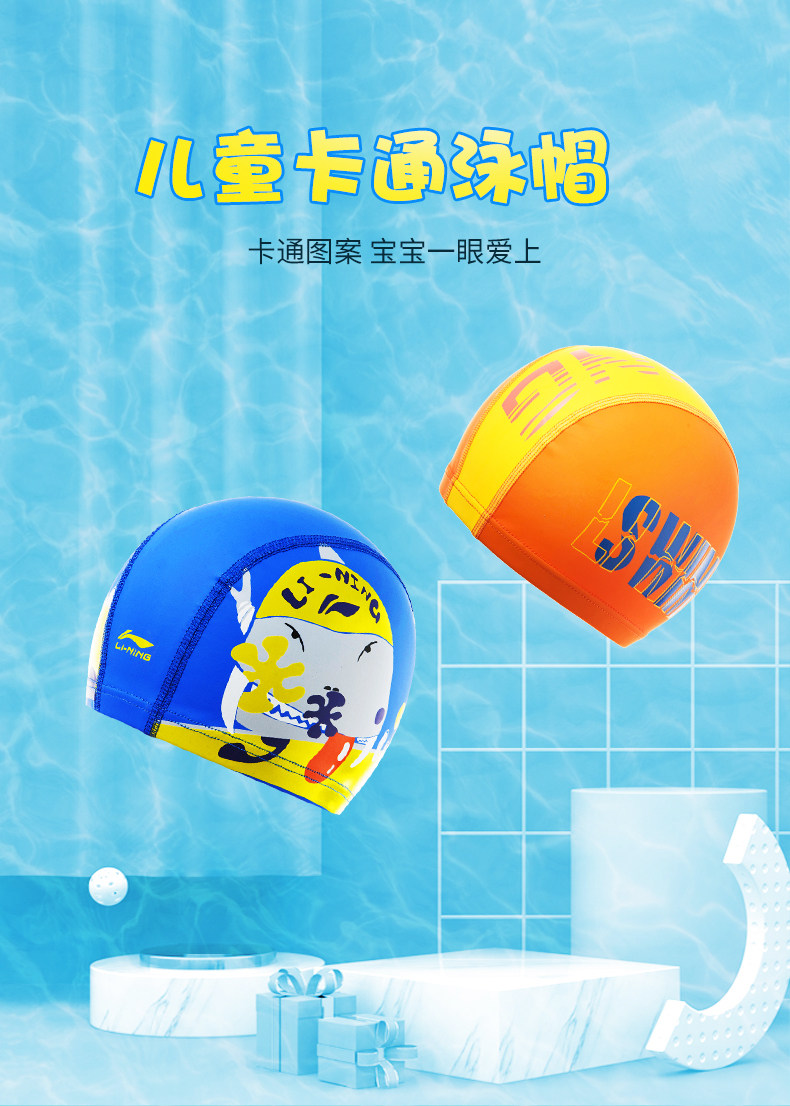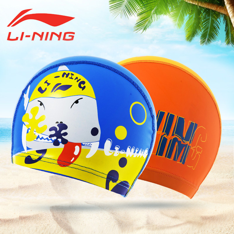 Li Ning, плавательная шапочка подходит для мужчин и женщин, водонепроницаемая шапка, полиуретановая милая детская ткань для плавания