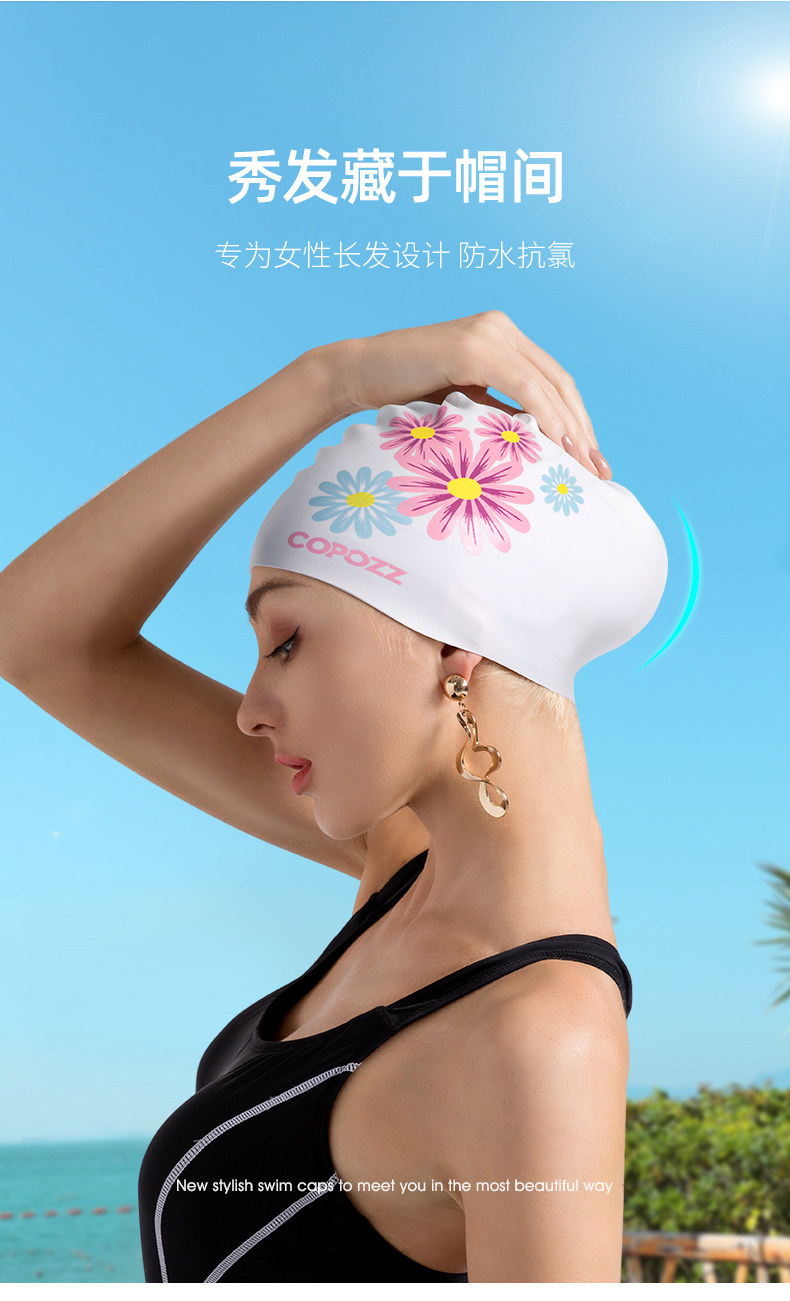 Водонепроницаемая комфортная модная плавательная шапочка для плавания, большой размер