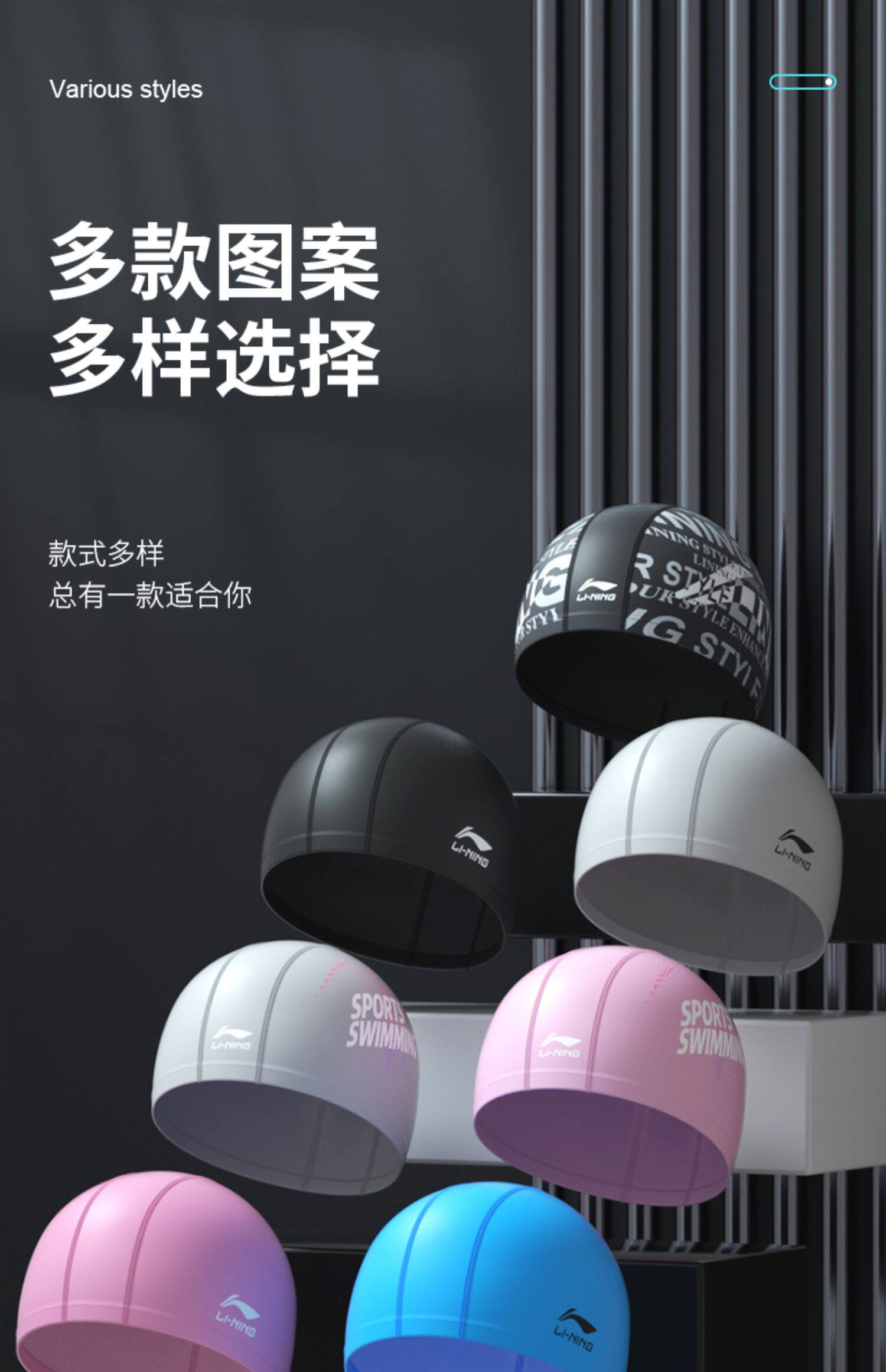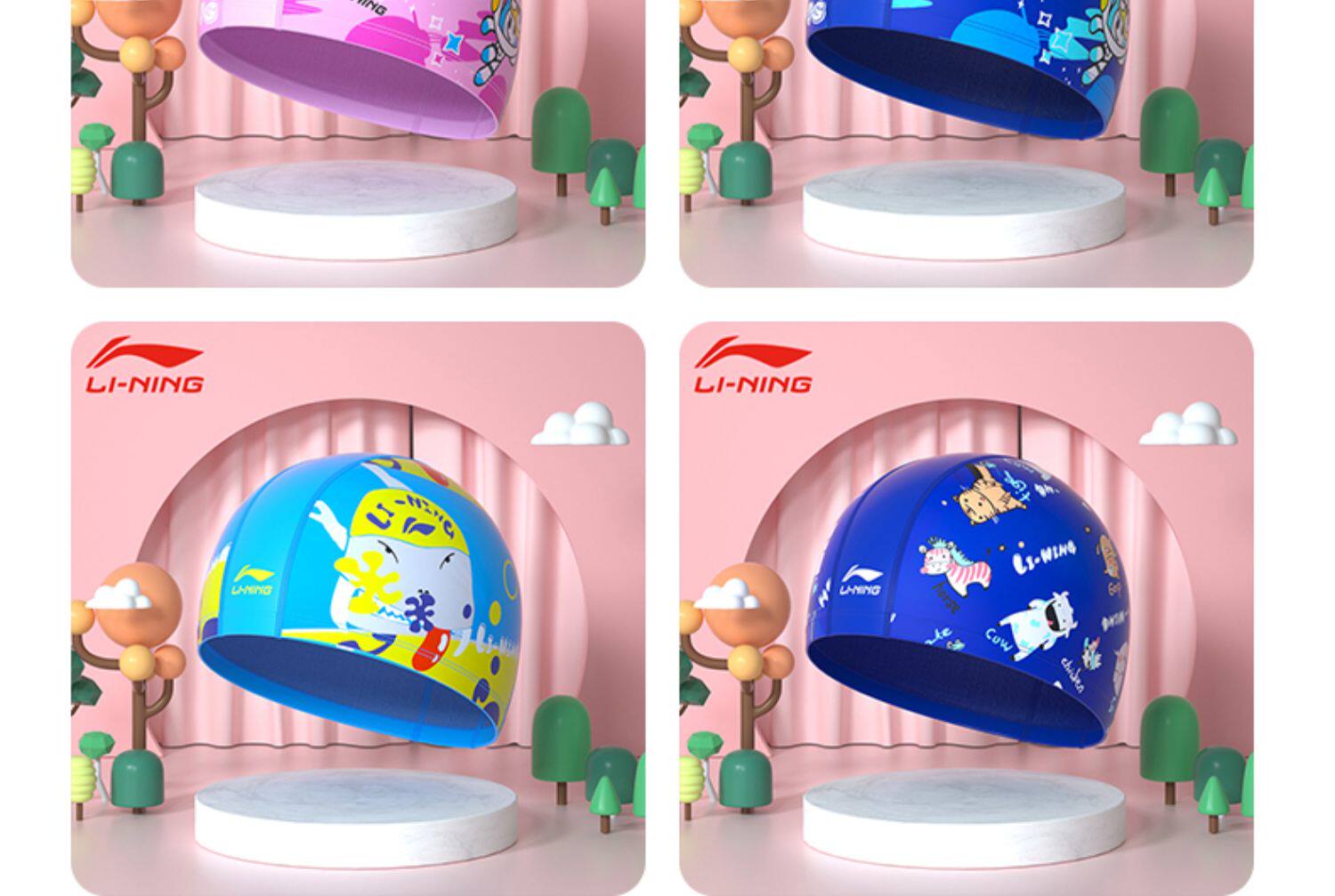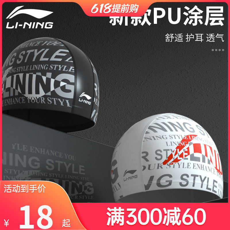 Li Ning, полиуретановая водонепроницаемая плавательная шапочка, детская силиконовая ткань для плавания