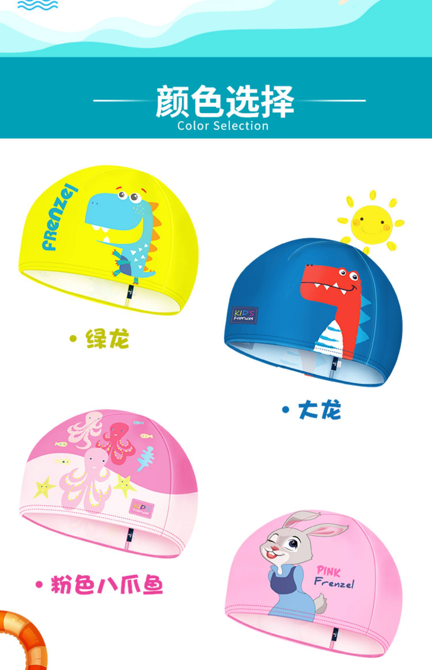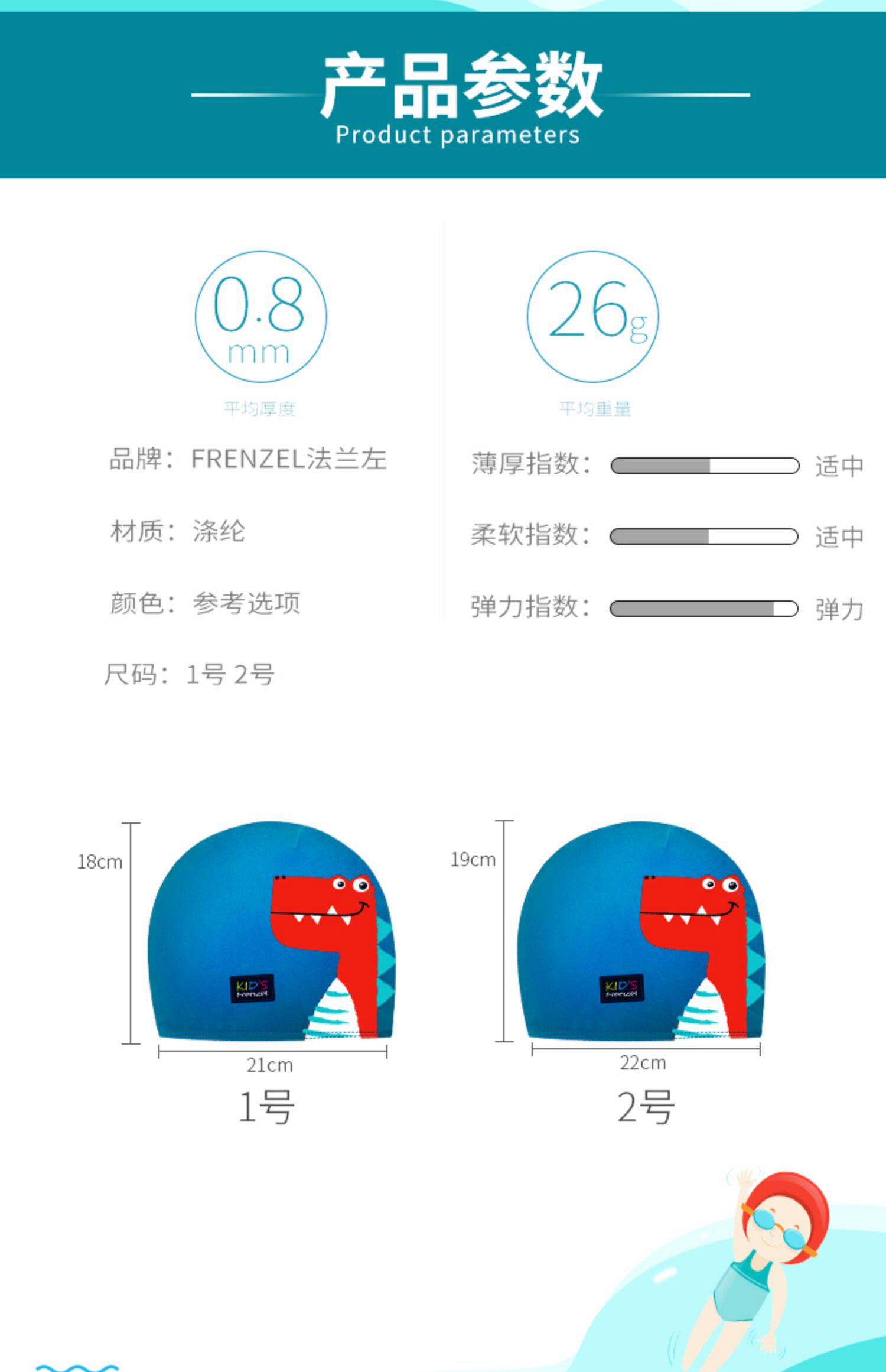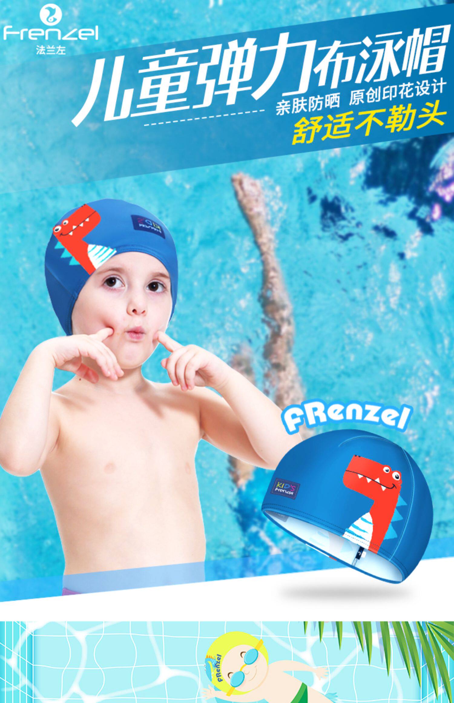 Френцель французский левый мультфильм детская плавательная шляпа Лицо лица цветочница плавательная ткань и купальные купальные материалы высокая пуля