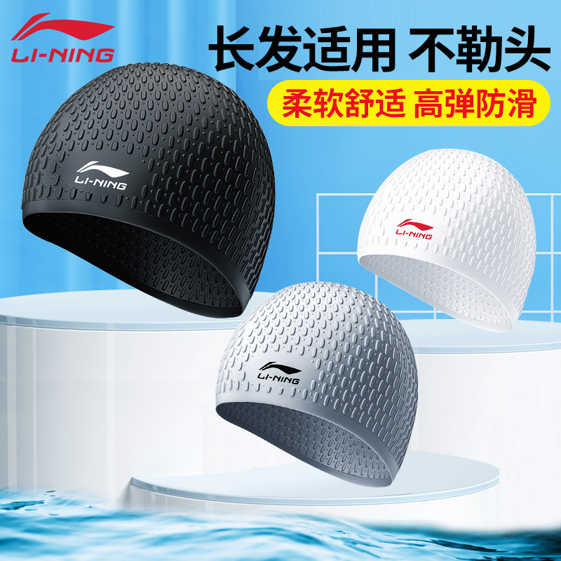 Li Ning, силиконовая плавательная шапочка, водонепроницаемая детская ткань, плавательный аксессуар, шапка