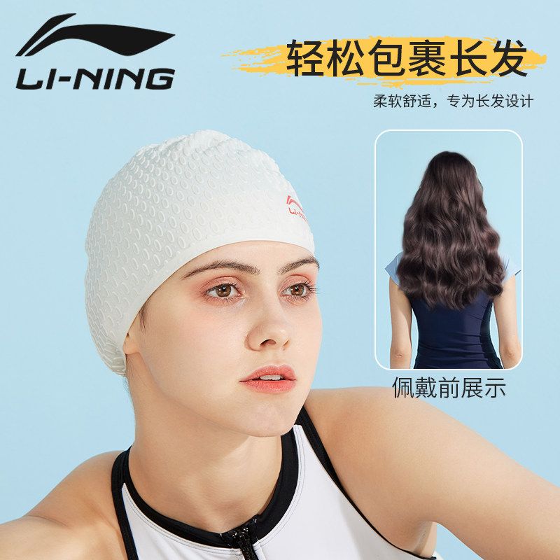 Li Ning, мужская плавательная шапочка, водонепроницаемая нескользящая силиконовая шапка для плавания