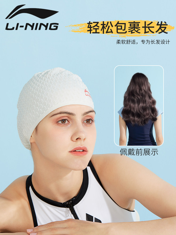 Li Ning, мужская плавательная шапочка, водонепроницаемая нескользящая силиконовая шапка для плавания