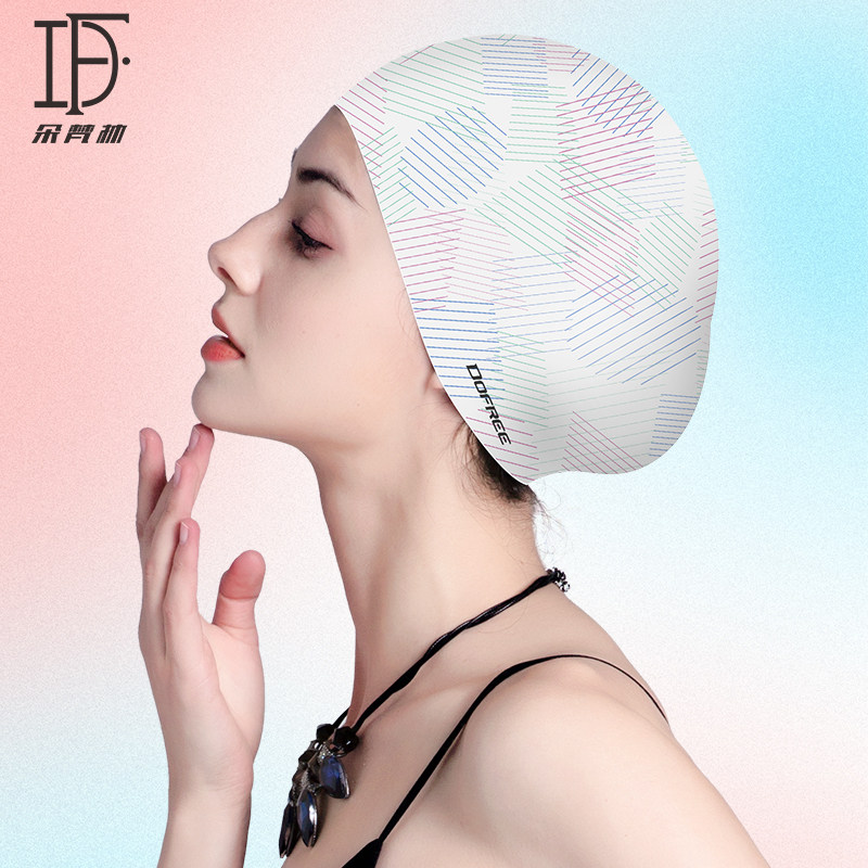DF DOTAN Плавательская шляпа Женский белый профессиональный водонепроницаемый комфорт увеличивает длинные волосы.