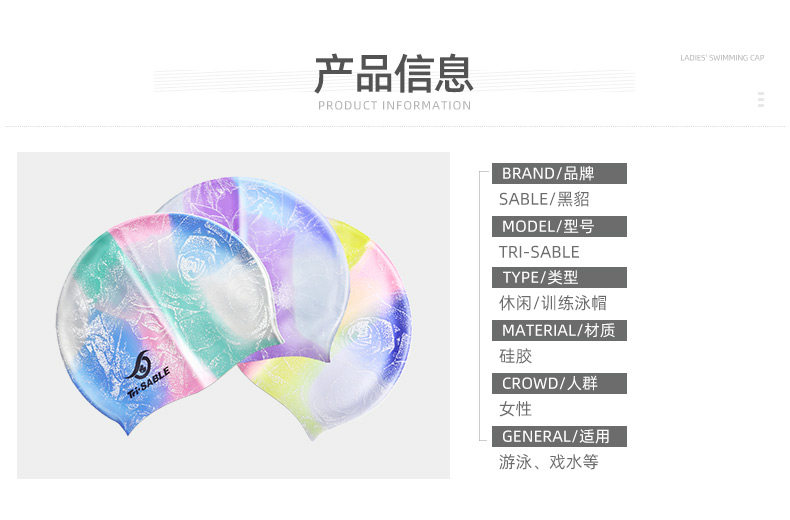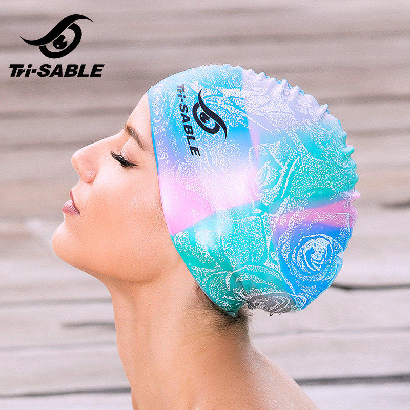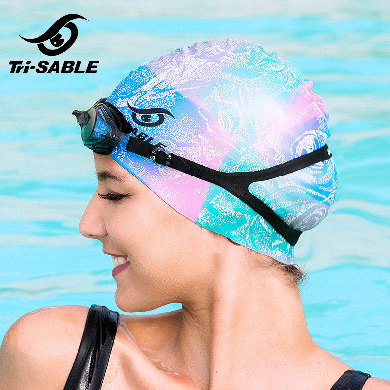 Собол/мраморная плавательная шляпа Цветная печать Силиконовая водонепроницаем