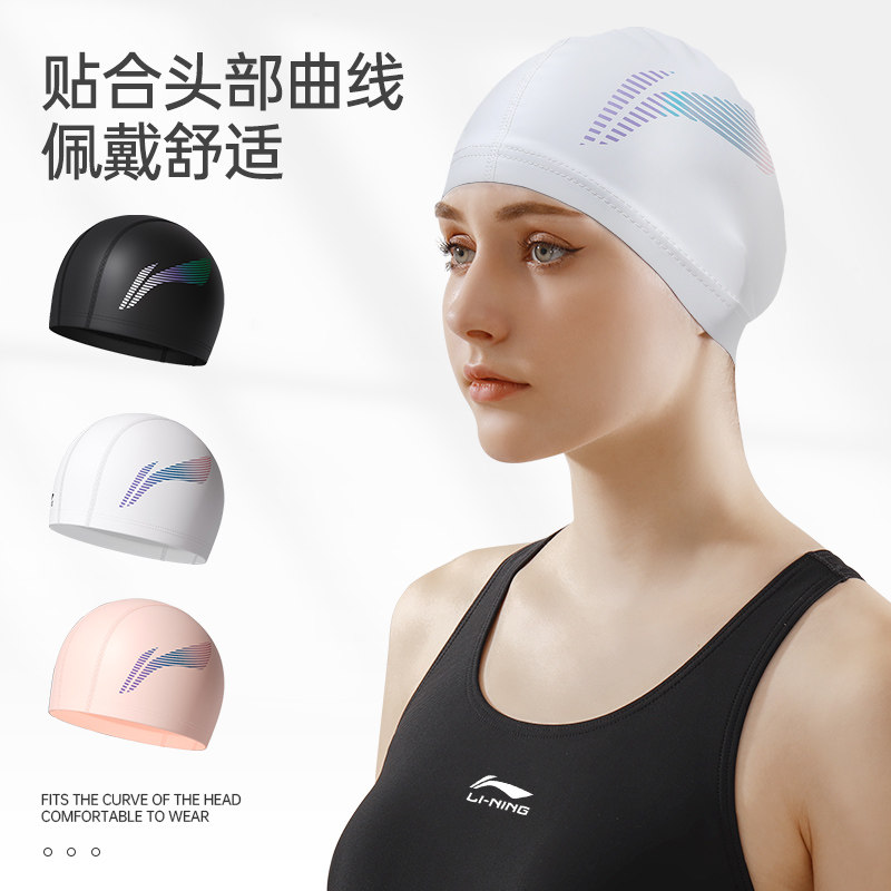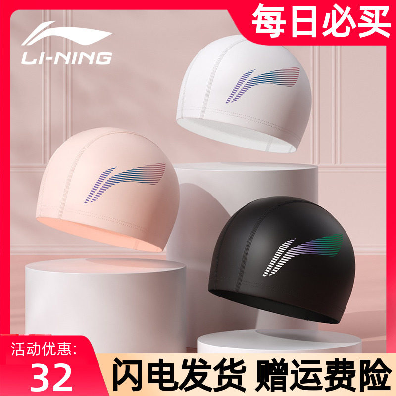 Li Ning, полиуретановая водонепроницаемая профессиональная большая плавательная шапочка подходит для мужчин и женщин, комплект для взрослых, плавательный аксессуар