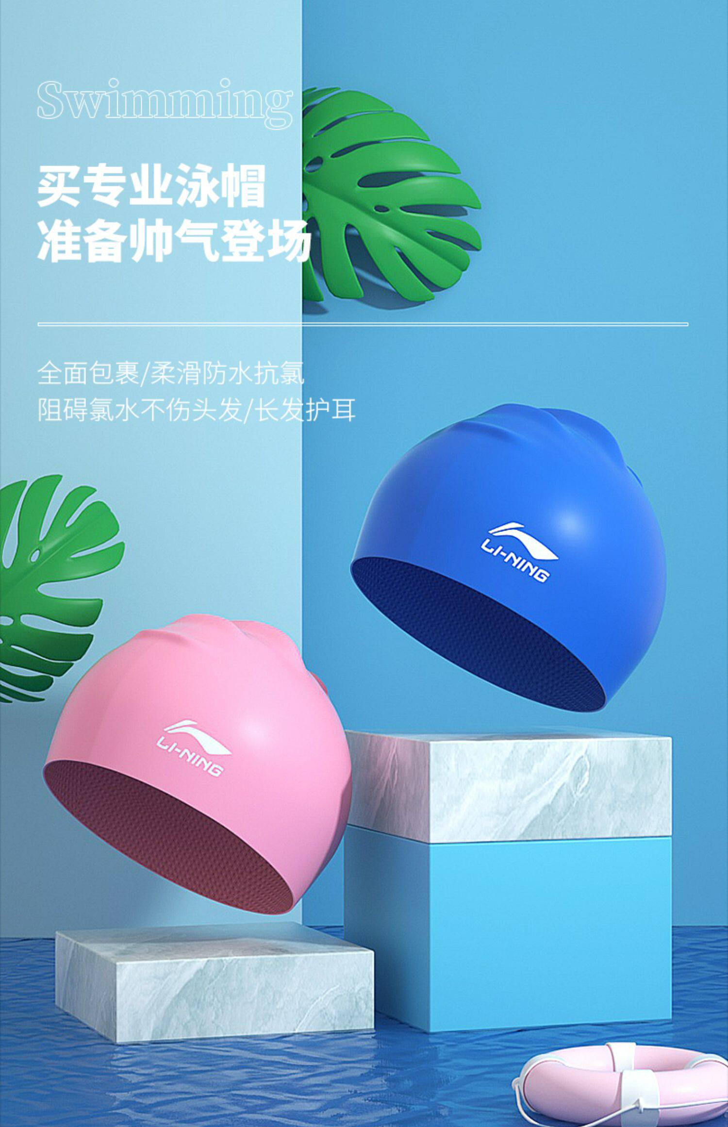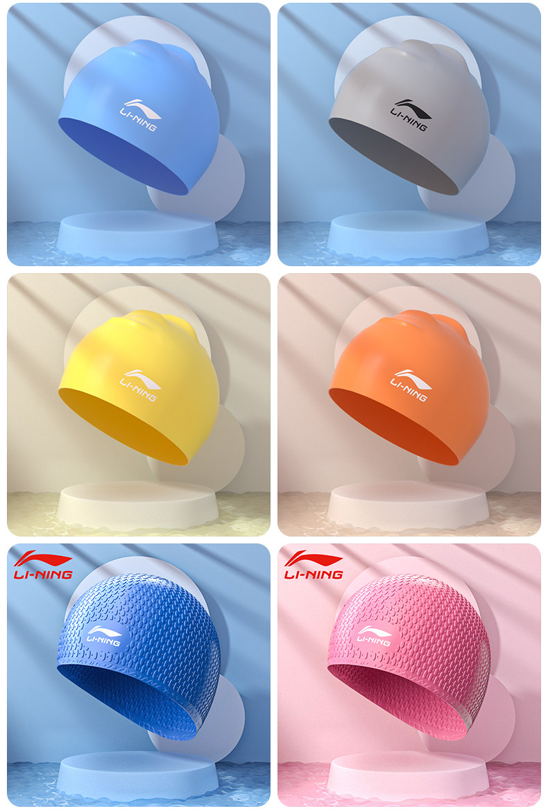 Li Ning, водонепроницаемая плавательная шапочка, силиконовая детская ткань для плавания