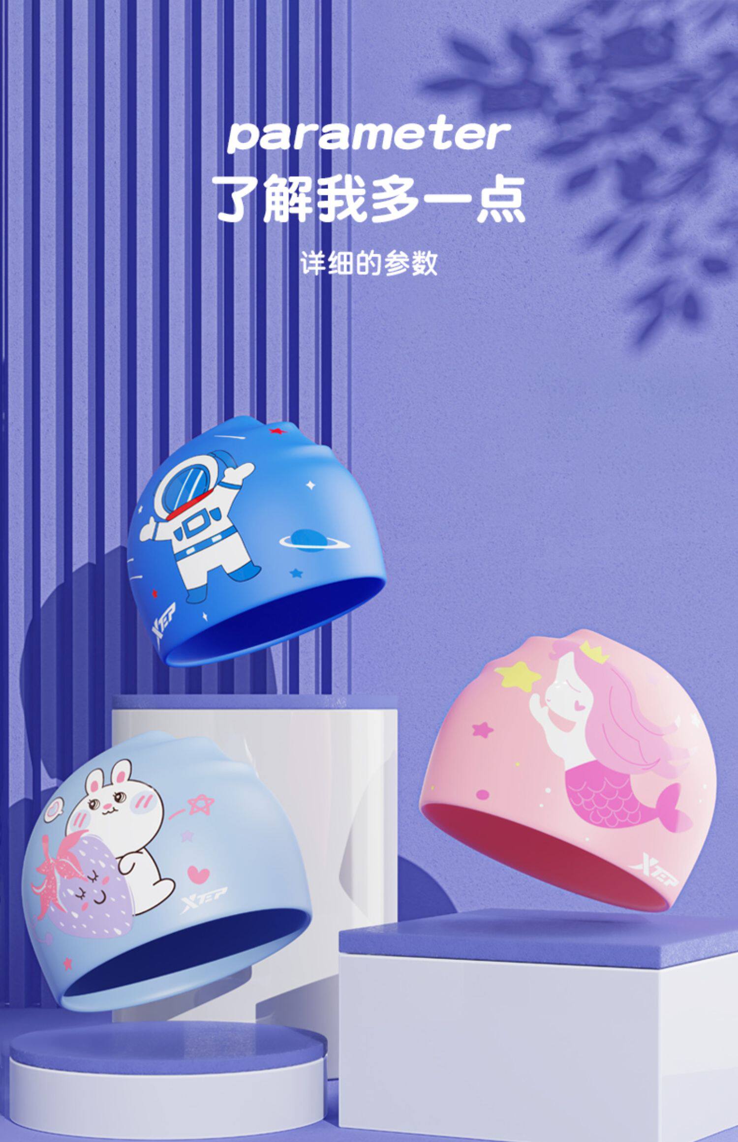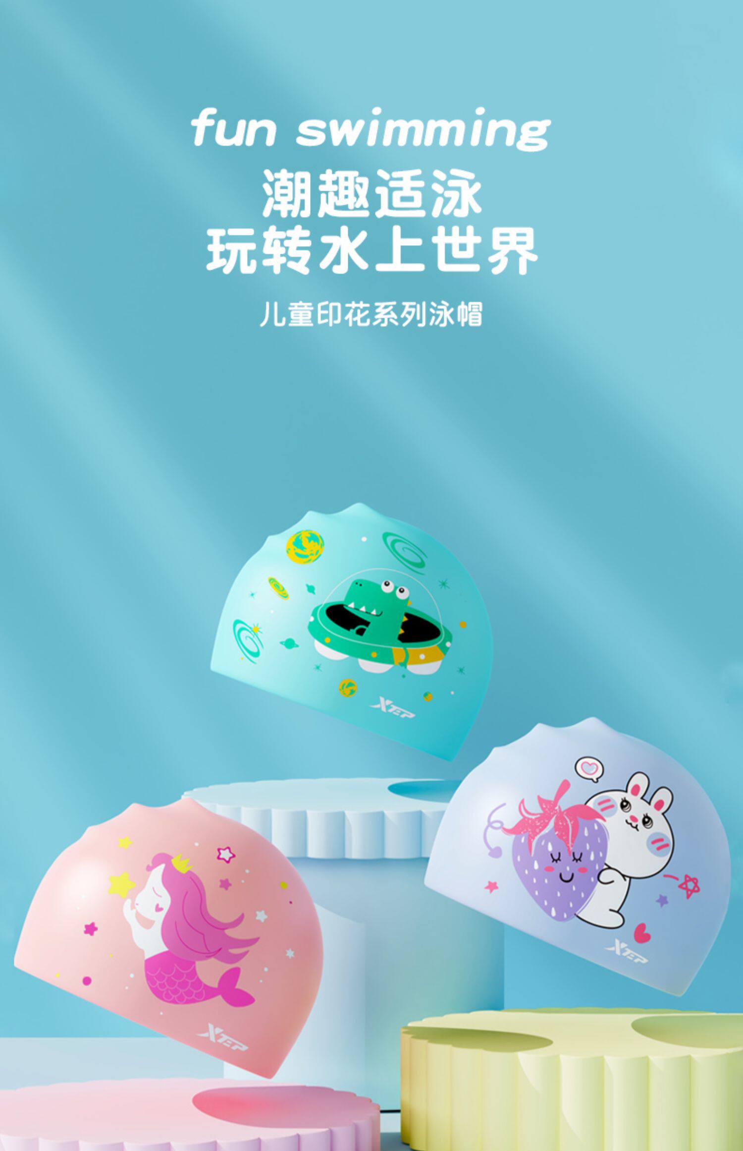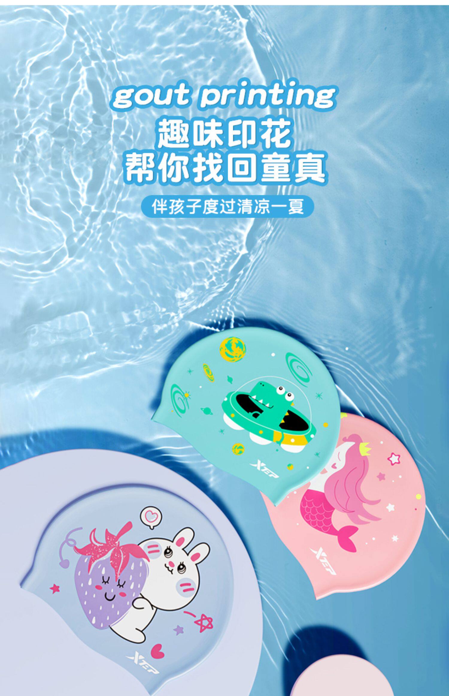 Xtep, детская летняя водонепроницаемая плавательная шапочка, силиконовая шапка для мальчиков, комплект для плавания