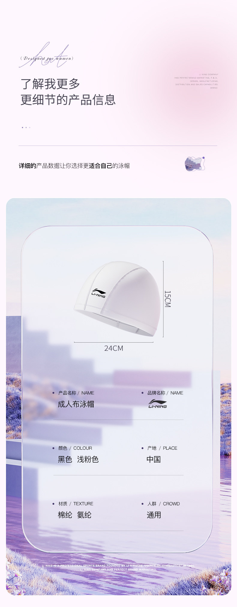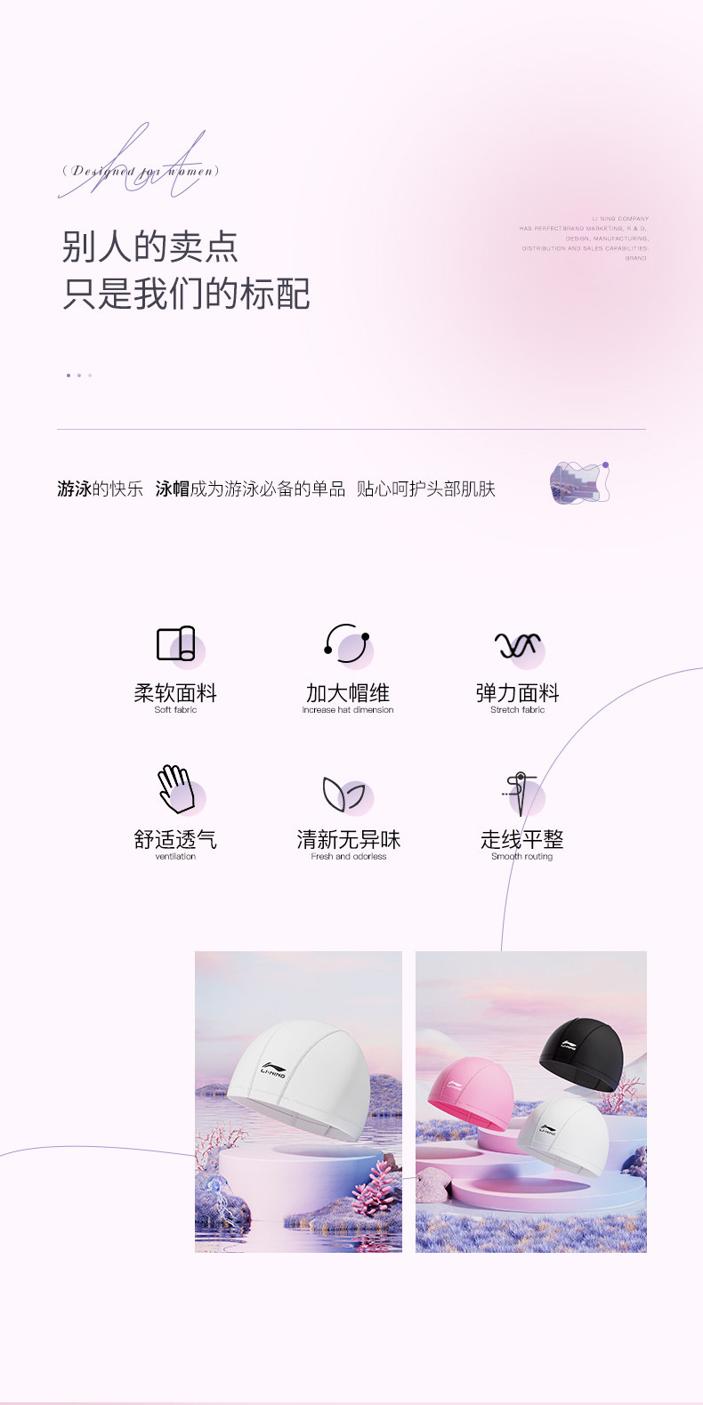 Li Ning, ткань, комфортная водонепроницаемая детская плавательная шапочка для плавания