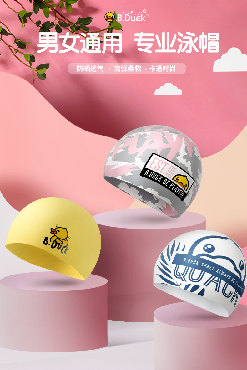 B.Duck, силиконовая водонепроницаемая плавательная шапочка, милый модный плавательный аксессуар