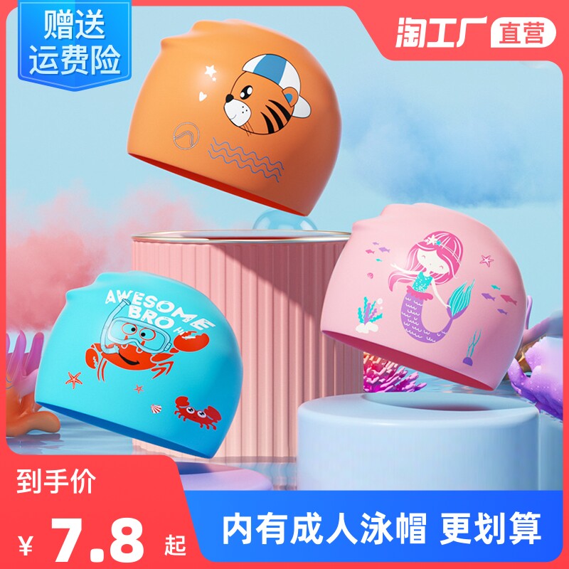 Силиконовая детская мультяшная плавательная шапочка для взрослых, водонепроницаемая повязка на голову подходит для мужчин и женщин, шапка для плавания
