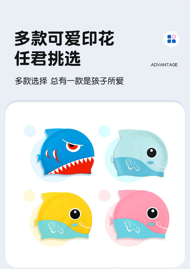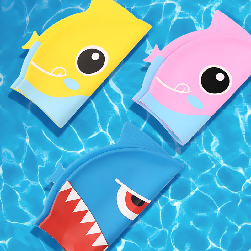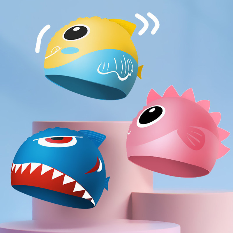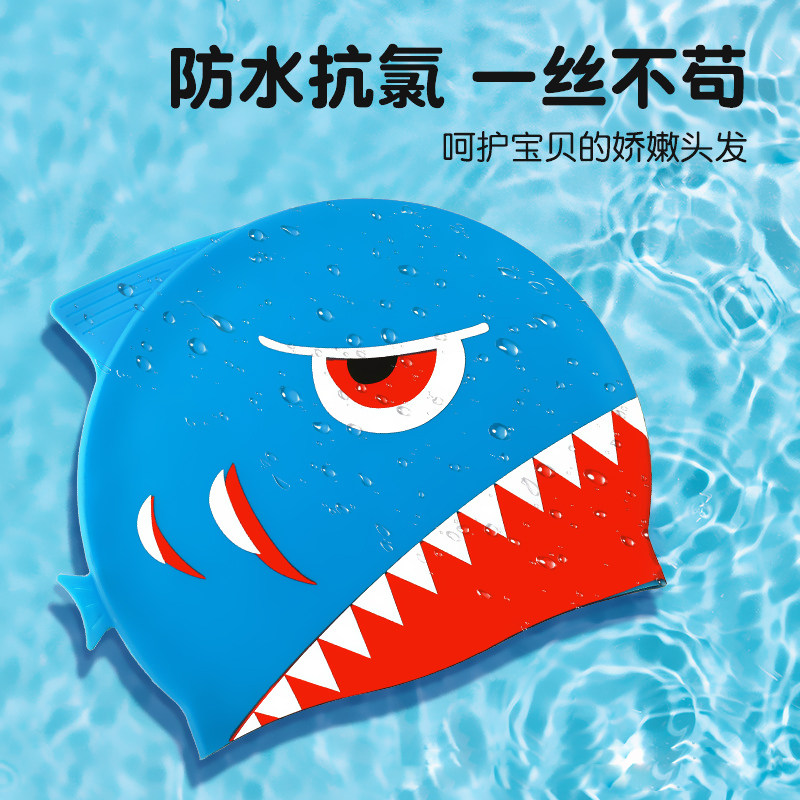 Мультяшная безопасная экологичная комфортная силиконовая акула подходит для мужчин и женщин, милая плавательная шапочка