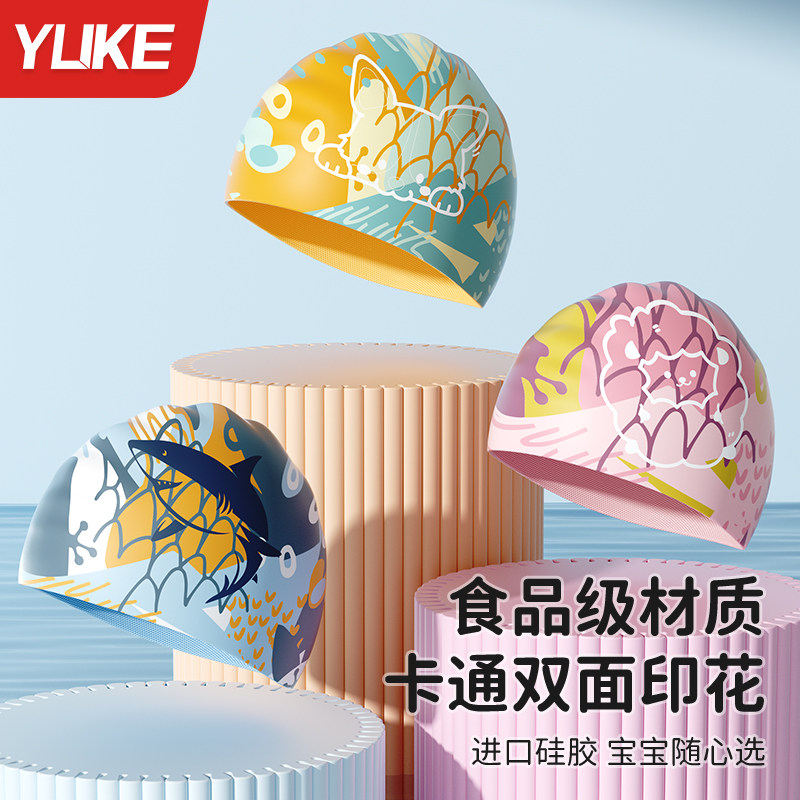 Детская мультяшная водонепроницаемая плавательная шапочка, силиконовая детская шапочка подходит для мужчин и женщин для плавания, солнцезащитная шляпа