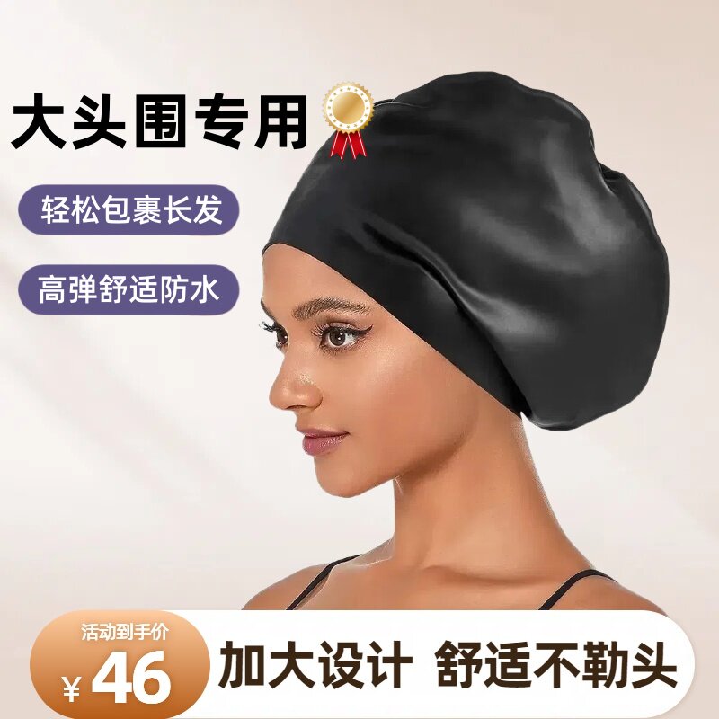 Плавательная шляпа Женская голова Bulit Big Head 2024 Новый мужской женский защита ушей Супер Большая черная профессиональная плавательная шляпа