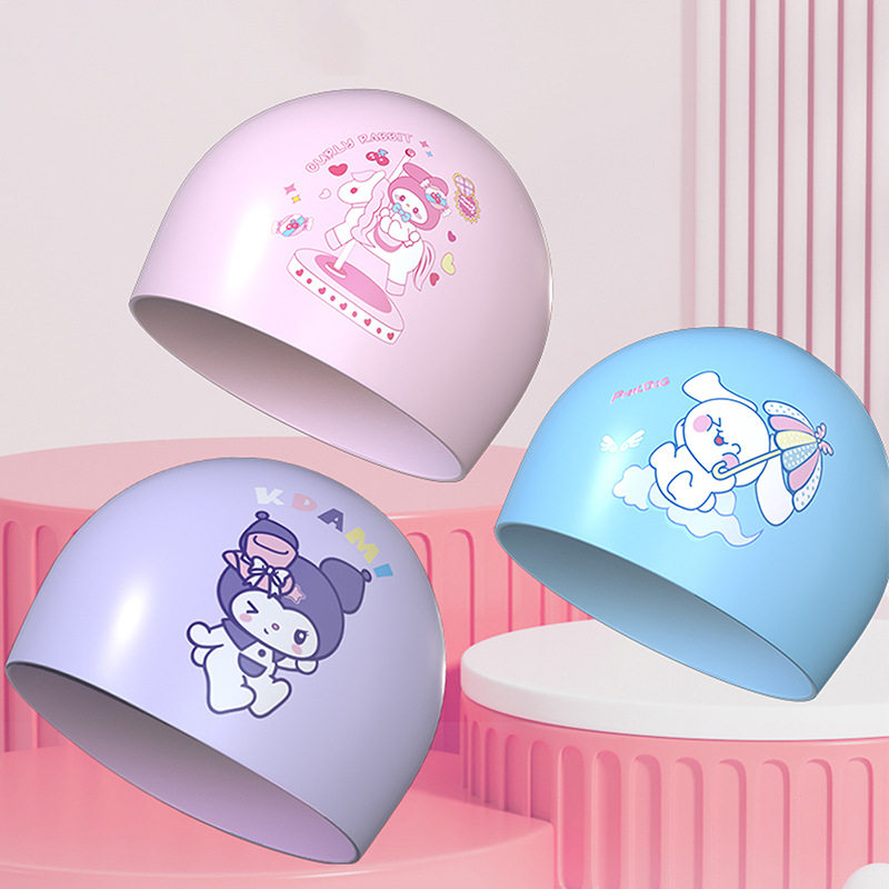 Sanrio, мультяшная плавательная шапочка, силиконовая детская шапочка для плавания, защитные наушники