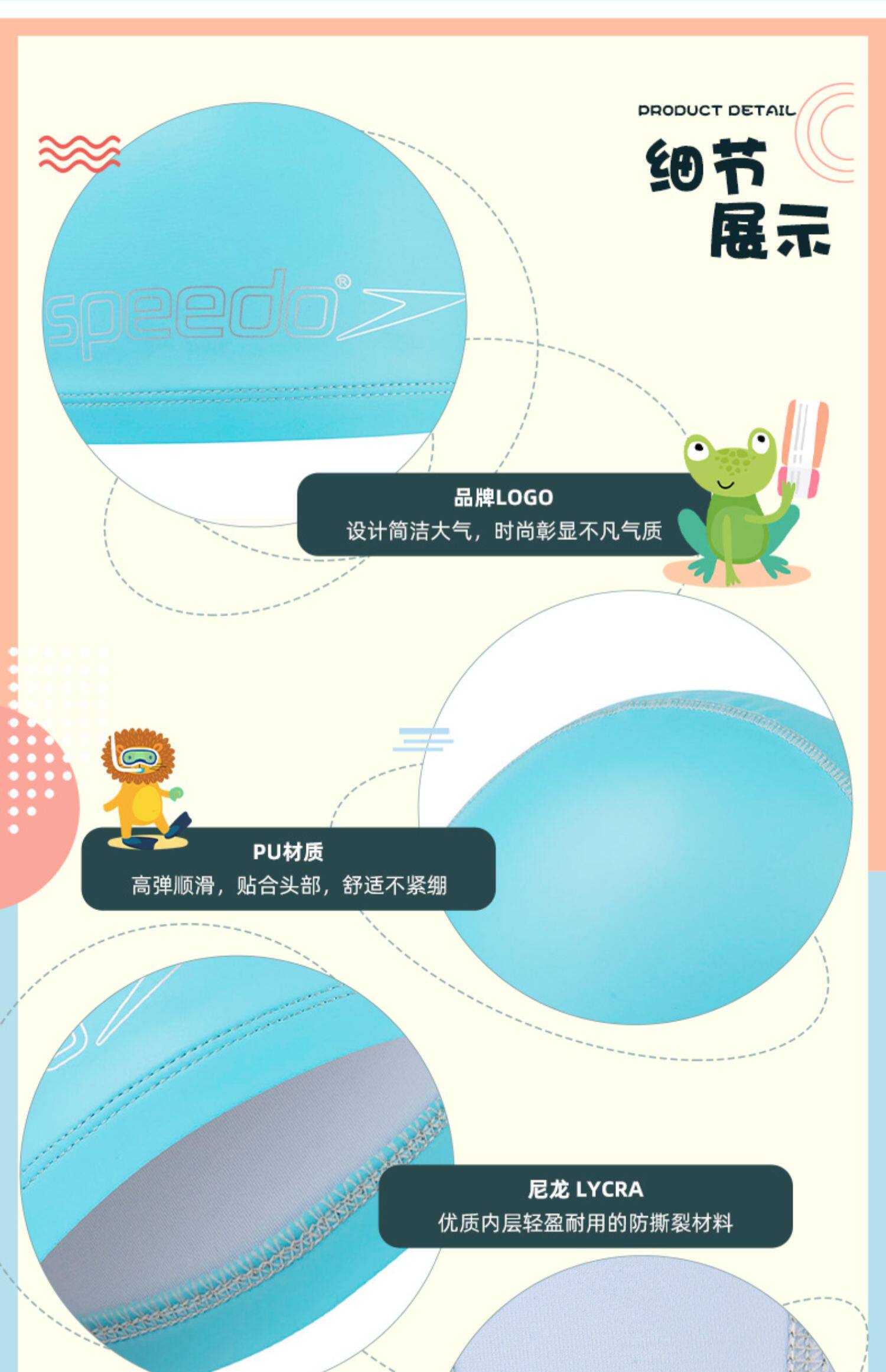 Speedo, детская полиуретановая водонепроницаемая плавательная шапочка, сверхлегкий комфортный плавательный аксессуар, материал