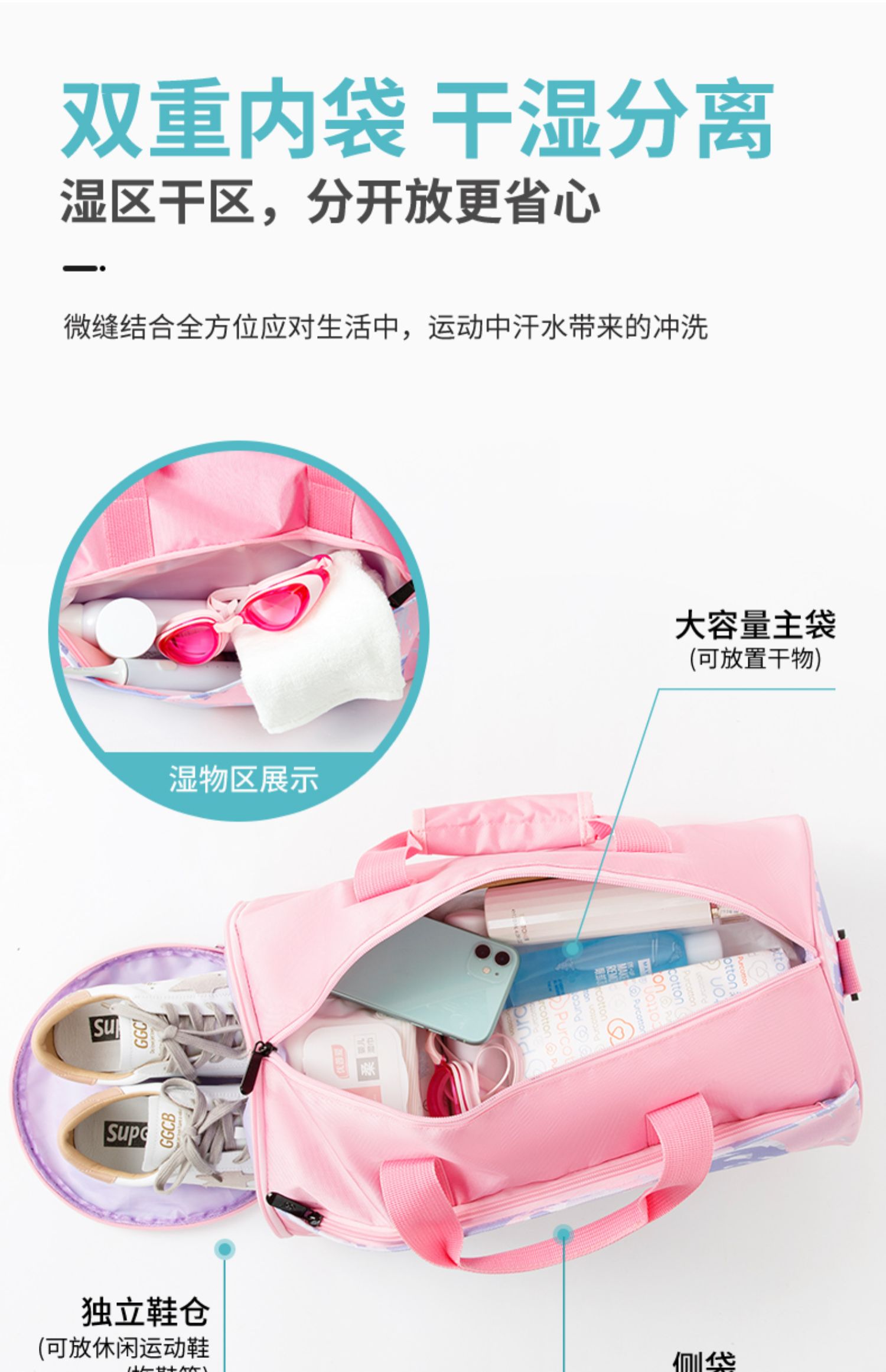 Спортивная сумка, сумка для плавательных принадлежностей с разделителями, сумка-органайзер для путешествий для тренировок, вместительный и большой рюкзак, снаряжение
