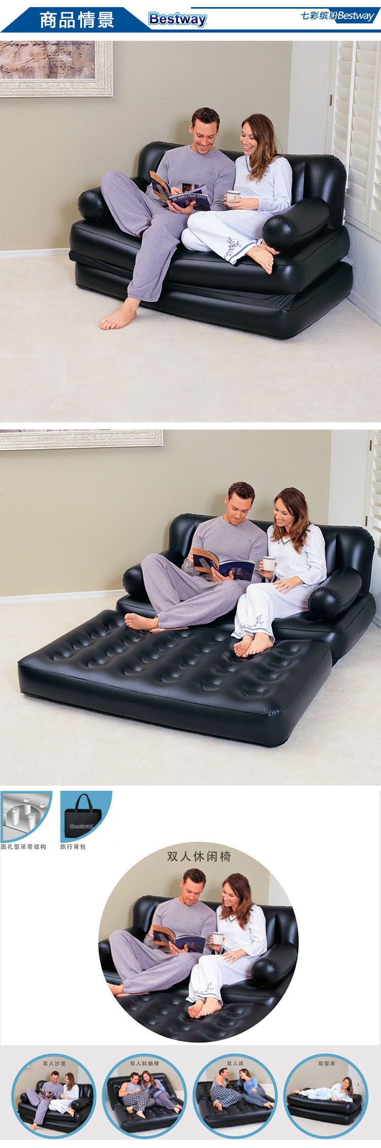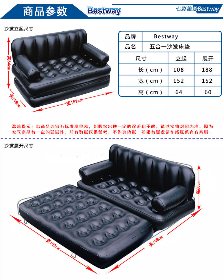 Bestway, черный складной надувной универсальный диван для двоих