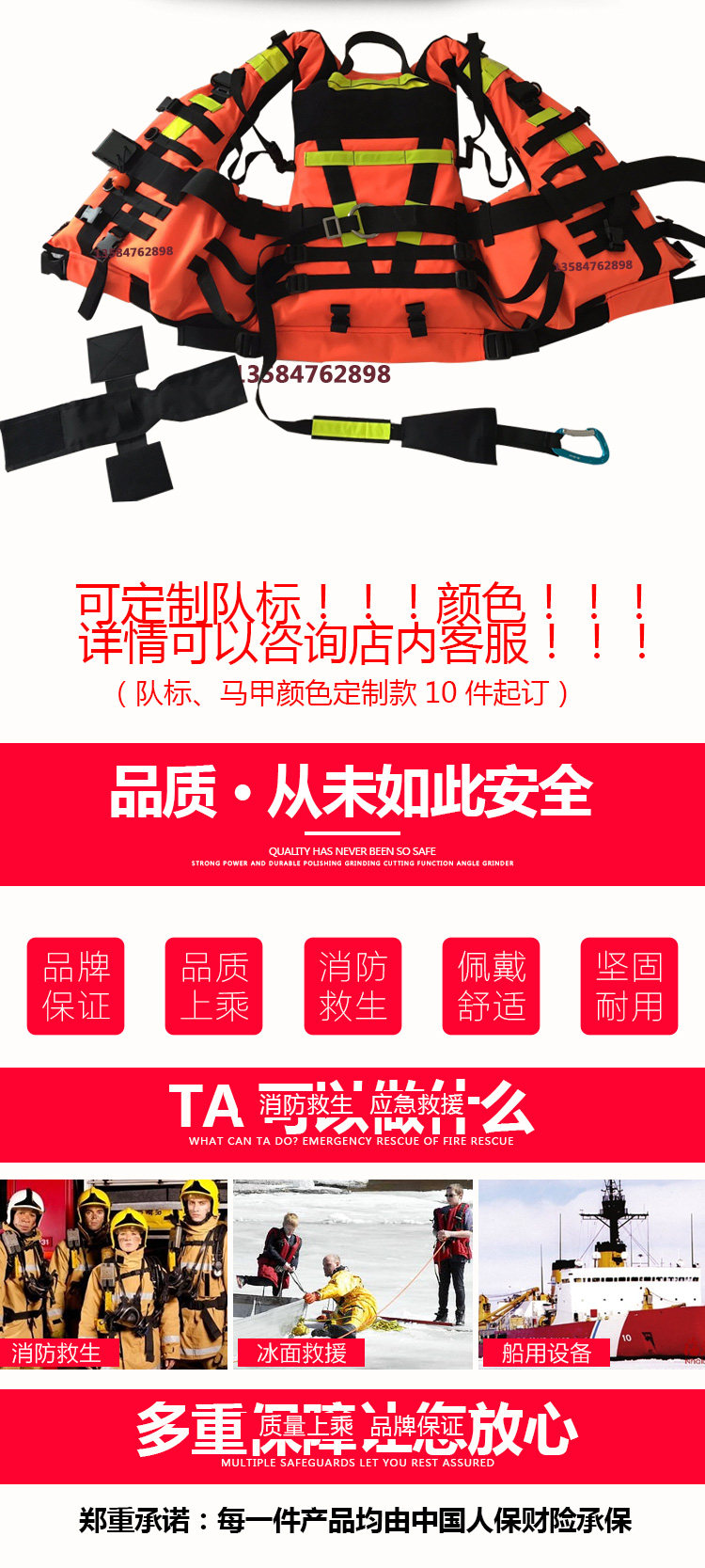 5. Живая приманка быстро -Система с лифрованием: нейлоновая лямка вокруг грудного ремня, шириной 5 см, 5 см, используйте набор ежедневных колец из нержавеющей стали и пластиковую стальную фиксацию, а также быстрая тяговая веревка на вытяженном кольце, которое можно исправить на плечи, не влияя на спасательное действие. Сущность