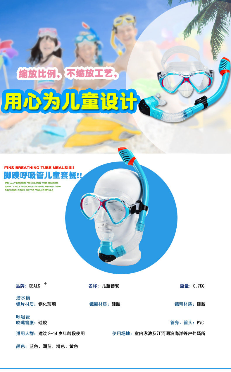Детская дыхательная трубочка для снорклинга, комплект, очки для плавания, дайвинг