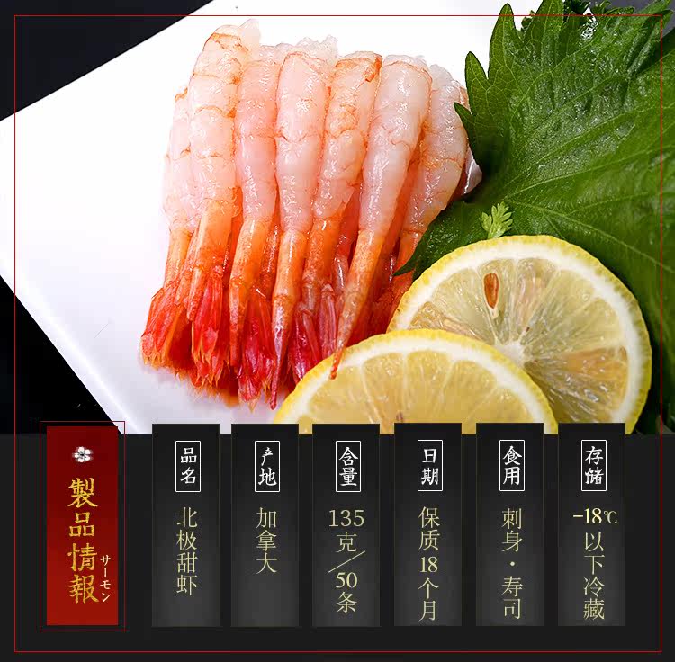 Арктические сладкие креветки AAA -Уровень Скорость PEEL 50 Пакет 135G Arctic Sweet Shrimp Sashimi