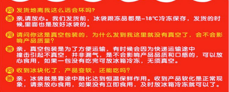 [购买冻品][请][顺便拍]1-2[个冰袋,这样在运输期间才不会坏掉,如不买,出现问题,本店不负责。冰袋链接如下][https://item.taobao.com/item.htm?spm=686.1000925.0.0.JL94XU]&id=533101253981