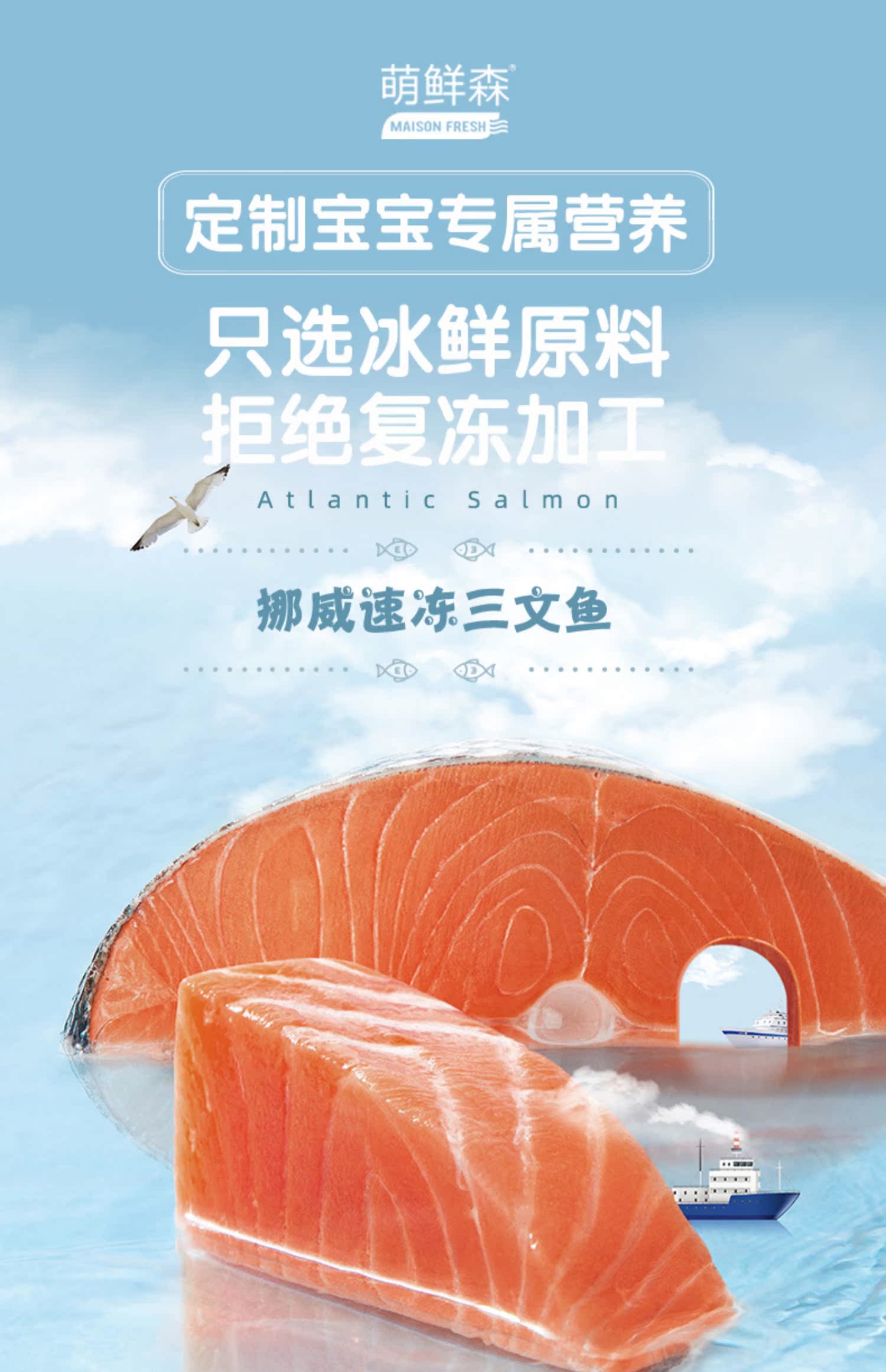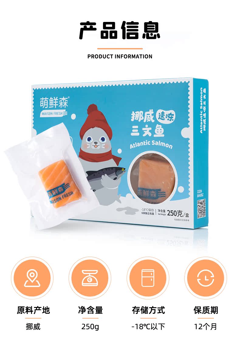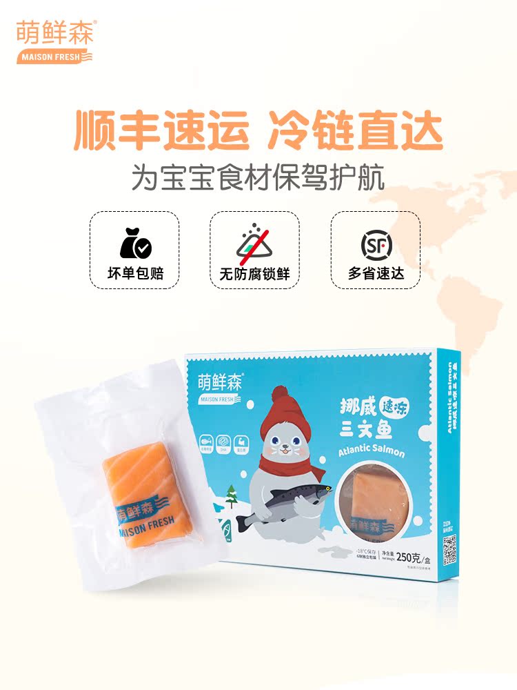萌鲜森 Норвежский лосось свежее сашими детские добавки пищевые добавки младенец и маленький ребенок в центре свежей упаковки
