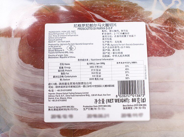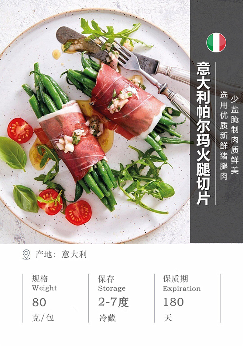 Итальянский импортный негранский пармский хэм пленка таблетка, ветчина, западная еда, бесплатная доставка 80G