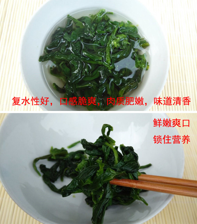 2. Сделайте суп: возьмите немного обезвоживания и замочите в кипящую воду в течение 2-3 минут. Добавьте приправы, чтобы сделать зеленый и освежающий овощный суп. Кроме того, он все еще смешивается с фаст-фудом, такими как мгновенная лапша.