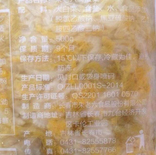 Zhu Laoliu Измельченная маринованная капуста 500 г Северо-восточный деликатес Настоящая маринованная капуста Маринованная капуста в большом баке Бесплатная доставка