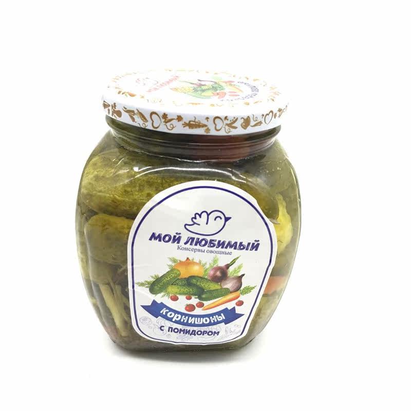 Российский огурец огурец Россия импортировал консервированные мини -кислые огурцы освежающие и хрустящие западные блюда с 500 граммами