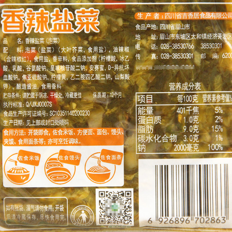 吉香居 Острые солевые овощи 106G*10 мешков с сичуанькой пряной рисовой едой завтрак