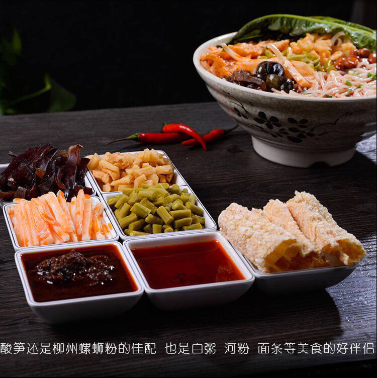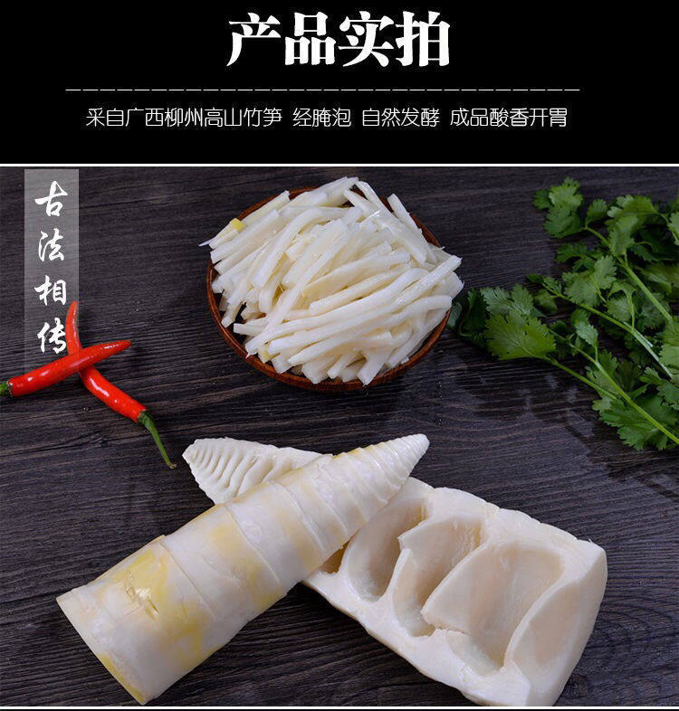 Аутентичный кислый бамбук стреляет кислый кислый кислый рог бобов Гуанси Гулин Райс Райс Снамоты Приготовленные ингредиенты