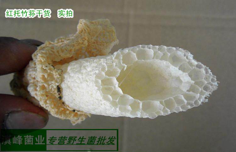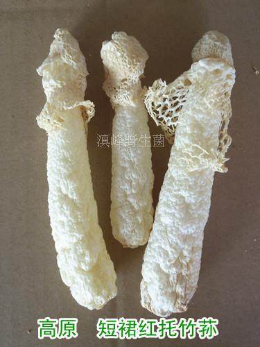 [第三:很多朋友都不吃竹荪的菌裙,短裙红托竹荪的菌裙很少,这种就是朋友们的最佳选择(大家可以对比上图,左侧为短裙红托竹荪)。]