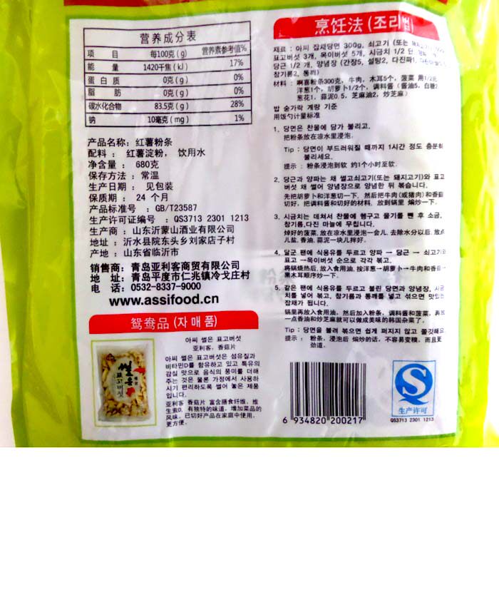 Корейский ароматный порошок невесты, сладкий картофель вентилятор корейский стиль смешанные овощи.