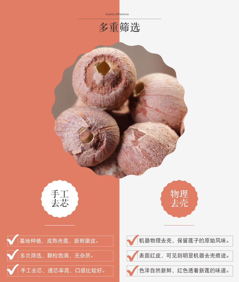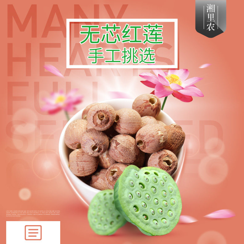 湘里农 Special -Объявьте большие De -Core Red Lotus Seeds Lotus Dry Goods 500G без серы Сянгтан Синглиан Специальность, без сердца красный лотос