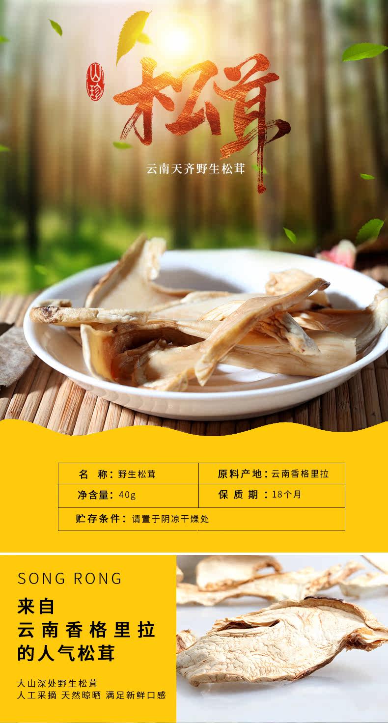 Tianqi Yunnan Tu Specialties Daquan Fresh Matsutake Dry Goods 40G натуральный вкусной холодный овощной флагманский магазин Официальный веб -сайт Официальный сайт
