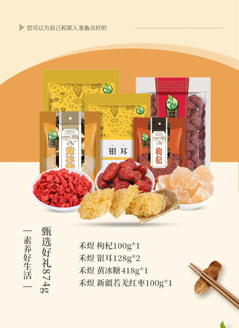禾煜 Tremella helold Rock Sugar Wolfberry Red даты 874G питательный комбинированный пакет
