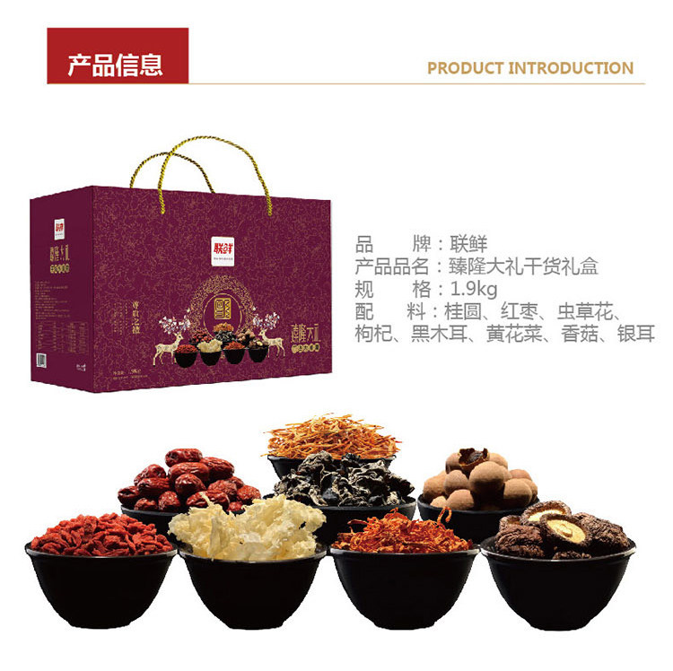 Lianxian Zhenlong Mushroom Mushroom Gifry Box Group Group 1,9 кг Упаковка Высоко -годовой подарочный подарочный подарочный пакет
