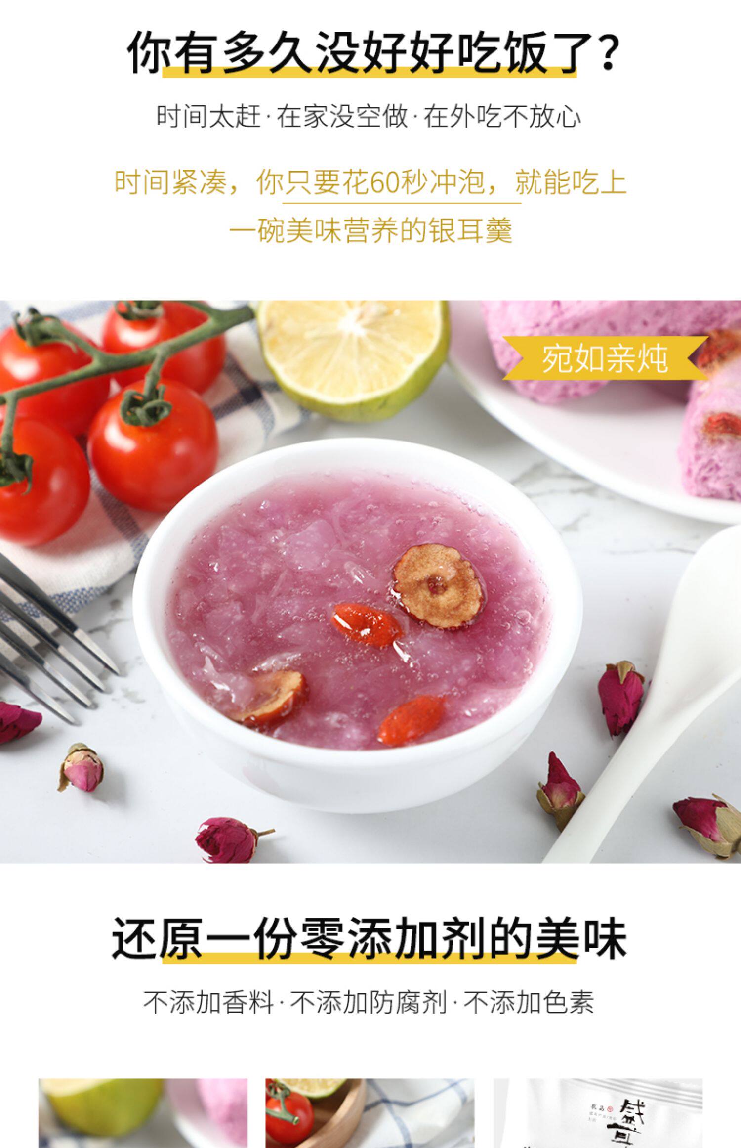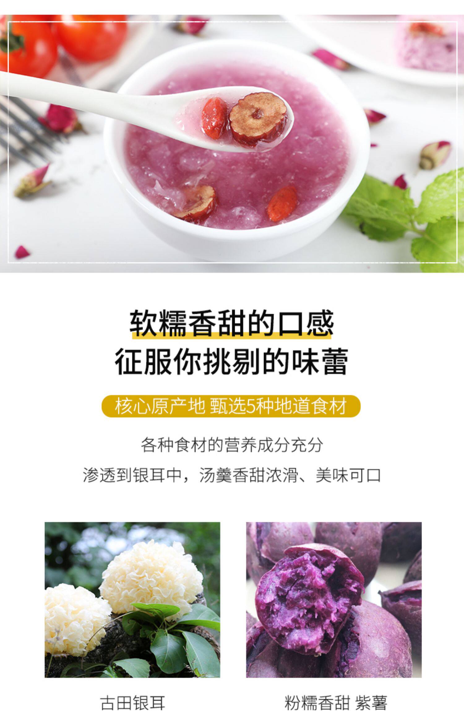 盛耳 Замороженная фиолетовая картофельная красная таблица тремелла, варелка для завтрака еда Волфберри, суп из волчьей беременности, освобожденная от фаст -фуда блюда