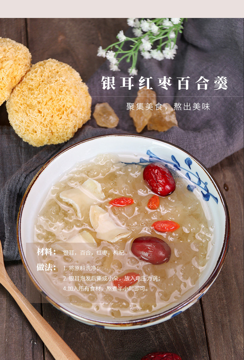 Tremella 500G*3 мешки с белым древесным ухом Древнее тремелла сухие товары клейкие и уродливые, сера, свежий снежный -