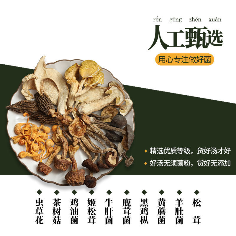 Дианский суп из диких бактерий, суп, сухой груз мацурургии, ламмакччо, гепатобактерия, Юньнань Шанчжэнь вкусной десять бактерий суп 140g