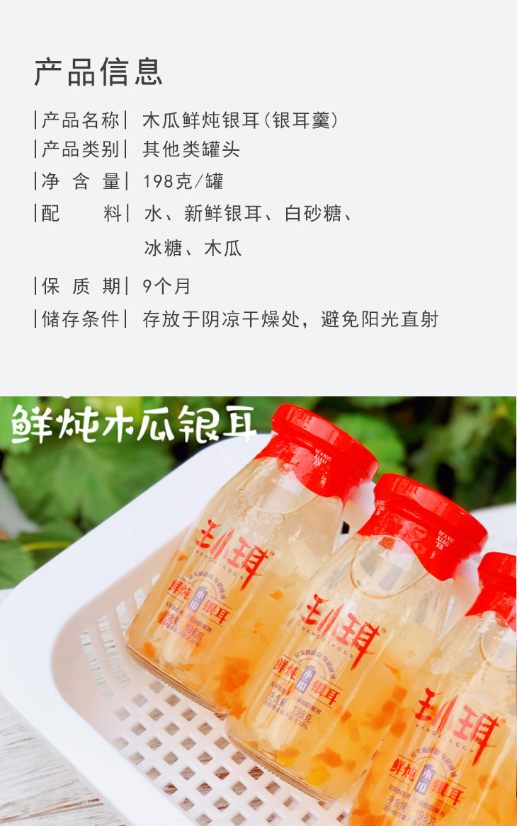 王小珥 Свежие тушеное тремелла 198gx6 бутылки сразу же серебряная серебряная деревянная дыня вкусовая замена питания сеть красный напиток