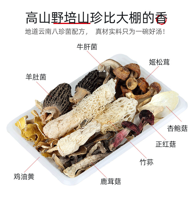 Высоко -выходные красочные грибные суп Юньнань Специально -бактерий суп, суп, суп -суп с грузовым супом грибной суп.