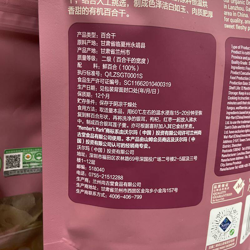 SAM'S SUCKE участник Mark Organic Lily Dry 200g суповые десертные ингредиенты на север и юг сухой товары